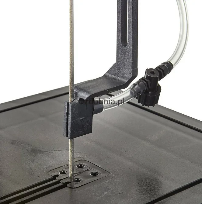 Woda: Ta piła taśmowa jest wyposażona w wąż spustowy, ale urządzenie nie jest całkowicie uszczelnione ze względu na swoją konstrukcję. Zalecamy umieszczenie pod piłą wybranej tacy (nie wchodzi w skład zestawu). Niektórzy użytkownicy używają zarówno tacy, jak i gąbki, aby wchłonąć nadmiar wody.