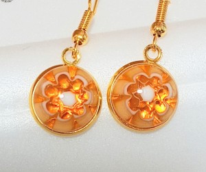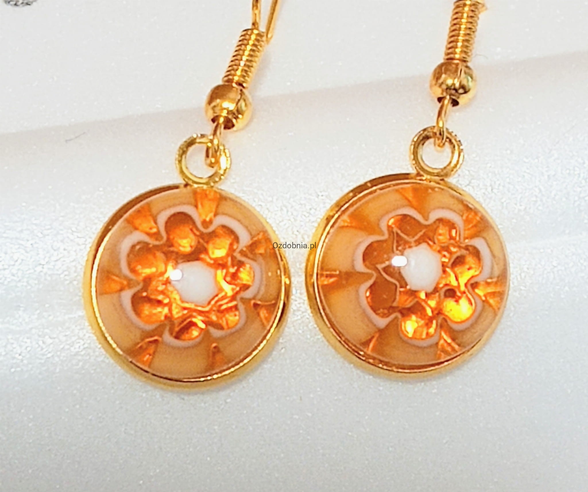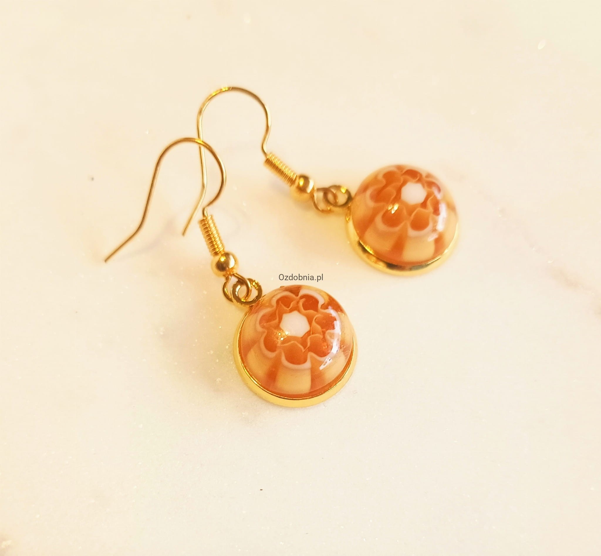Przepiękne kolczyki w bursztynowo-białym kolorze. Wykonane w technice fusingu, ze szkła Murano z korali millefiori.