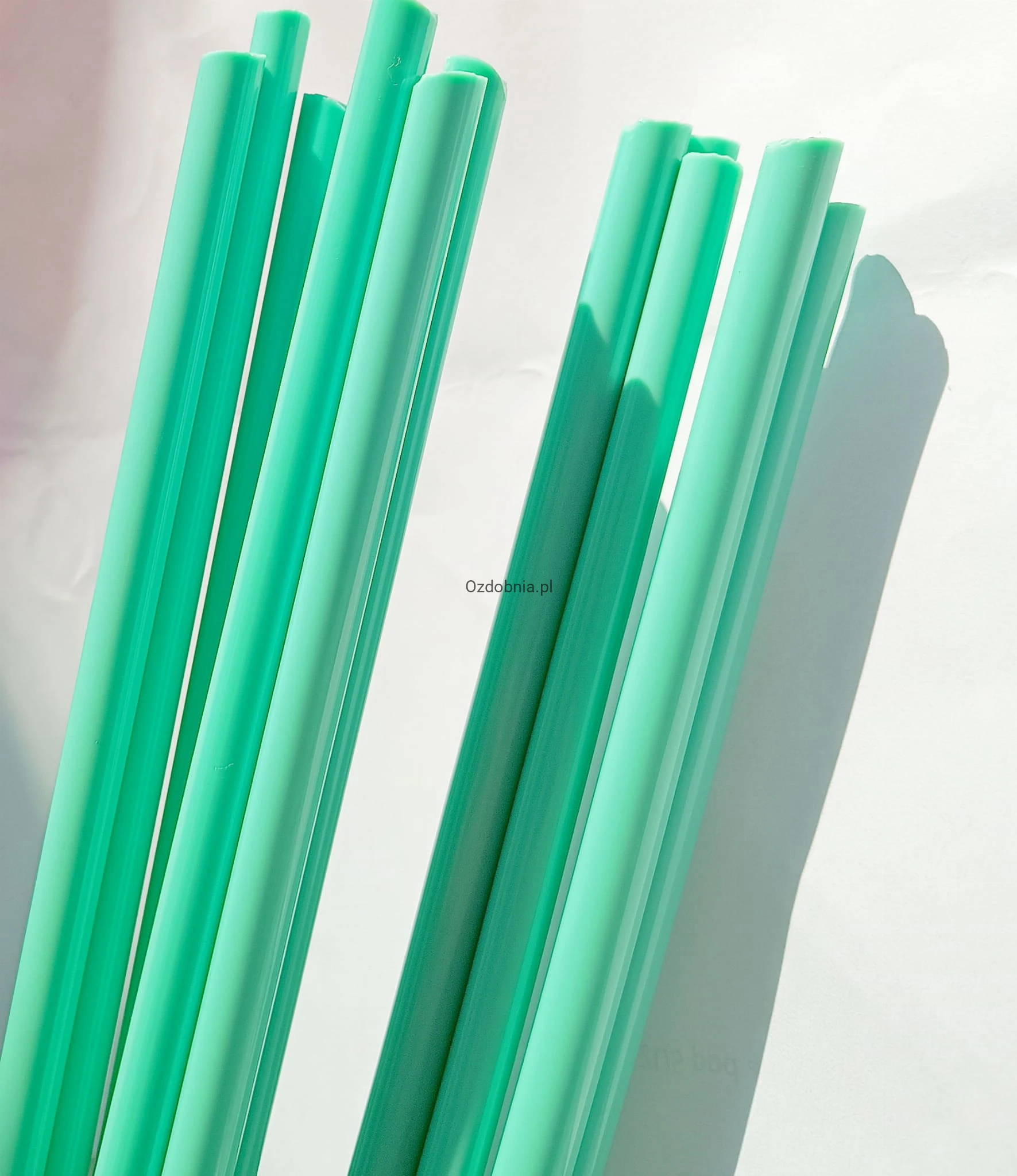 Opalowe pręty szklane w kolorze pistacjowym.