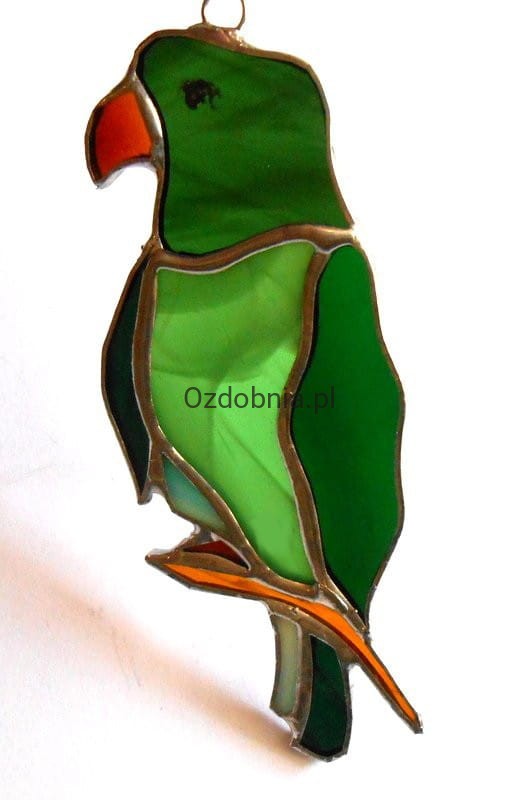 Zawieszka witrażowa - Papuga zielona wykonana jest z oryginalnego szkła